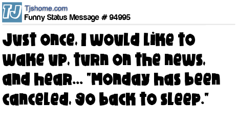 - # 100467 Just once, I would like to wake up, turn on the news, and hear...'Monday has been canceled, go back to sleep.'