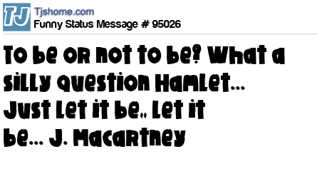 X To be or not to be? What a silly question Hamlet... Just let it be,, let it be... J. Macartney