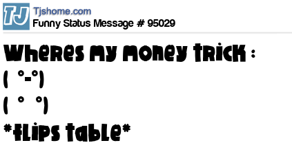 X is wheres my money trick : (╮°-°)╮┳━┳ (╯°□°)╯ ┻━┻ *flips table*
