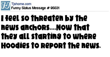 X I feel so threaten by the news anchors....Now that they all starting to where Hoodies to report the news.