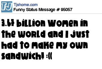 - # 139634 3.67 billion Women in the world and I just had to make my own sandwich! :((