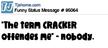 - # 146161 Please stop calling me a "cracker." The correct term in "Saltine-American."