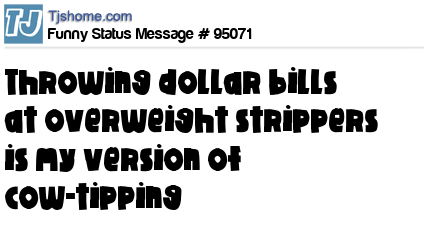 - # 111373 throwing dollars at over weight strippers is my version of cow tipping