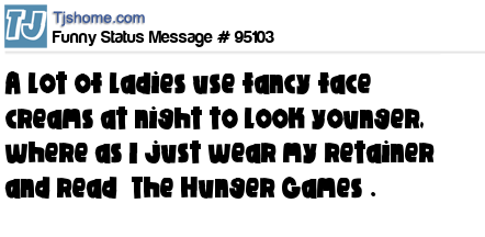 X is A lot of ladies use fancy face creams at night to look younger, where as I just wear my retainer and read “The Hunger Games”.