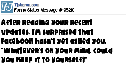 X After reading your recent updates, I'm surprised that Facebook hasn't yet asked you, "Whatever's on your mind, could you keep it to yourself?"
