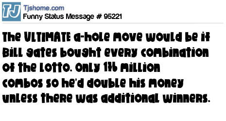 X is The ULTIMATE a-hole move would be if Bill gates bought every combination of the lotto. Only 176 million combos so he'd double his money unless there was additional winners.