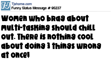 - # 149771 Women who brag about multi-tasking should chill out. There is nothing cool about doing 4 things wrong at once