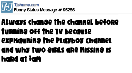 X is Always change the channel before turning off the TV because expkauning the Playboy Channel and why two girls are kissing is hard at 7am