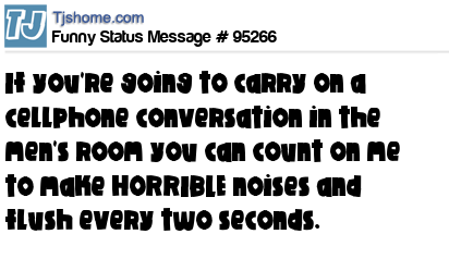 X is If you're going to carry on a cellphone conversation in the men's room you can count on me to make HORRIBLE noises and flush every two seconds.