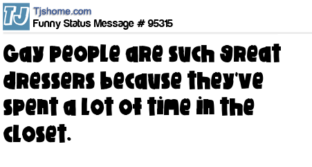 - # 85204 Gay people are such immaculate dressers because they've spent a lot of time in the closet.