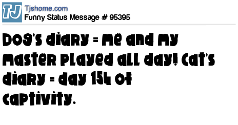 - # 98972 Dog diary: Me and my master played all day long! Cat diary: Day 147 of captivity.