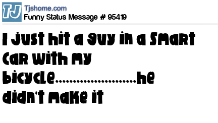 X I just hit a guy in a Smart Car with my bicycle.......................he didn't make it