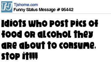 X says Idiots who post pics of food or alcohol they are about to consume, stop it!!!