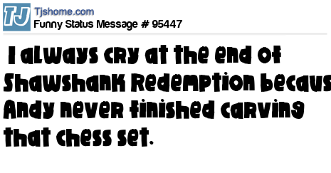 X says I always cry at the end of Shawshank Redemption because Andy never finished carving that chess set.