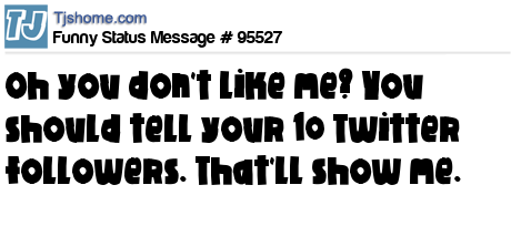 X says Oh you don't like me? You should tell your 10 Twitter followers. That'll show me.