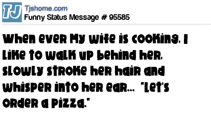 X is When ever My wife is cooking, I like to walk up behind her, slowly stroke her hair and whisper into her ear...  "Let's order a pizza."