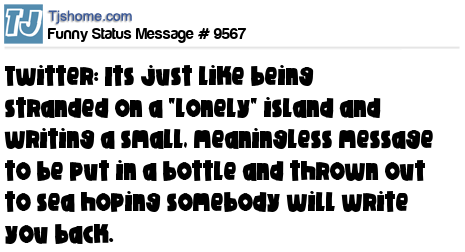X says Twitter: Its just like being stranded on a "lonely" island and writing a small, meaningless message to be put in a bottle and thrown out to sea hoping somebody will write you back.