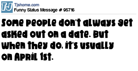 - # 95516 good joke today...single people change ur realtionship status to "in a relation". when friends ask who it is say "april....April Fools"
