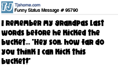 X says I remember my grandpas last words before he kicked the bucket... "Hey son, how far do you think I can kick this bucket?"