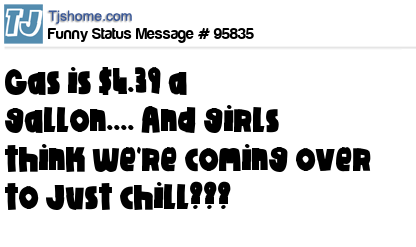 - # 93396 Gas prices are about $3.95 a gallon and females still think guys are coming over to just "CHILL"