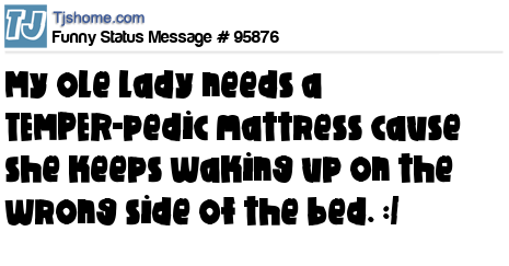X My ole lady needs a TEMPER-pedic mattress cause she keeps waking up on the wrong side of the bed. :/
