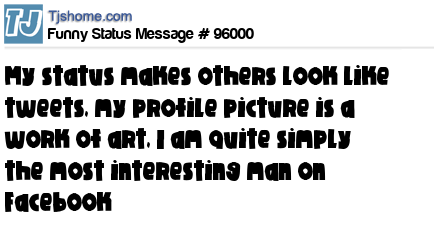 X is My status makes others look like tweets, my profile picture is a work of art, I am quite simply the most interesting man on Facebook