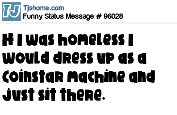 X says If I was homeless I would dress up as a Coinstar machine and just sit there.