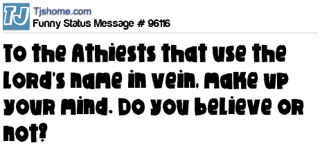 I wish I could blame my iPhone for the typo, but sadly it was my typing too fast. This status came from a co-worker of mine. She claims to be "atheist", no doubt 'cause she is in fact a Lesbian. She also says "GD" on a consistent basis. But thanks for the concern.