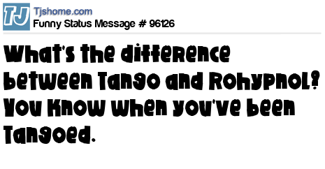 X says What's the difference between Tango and Rohypnol? You know when you've been Tangoed.