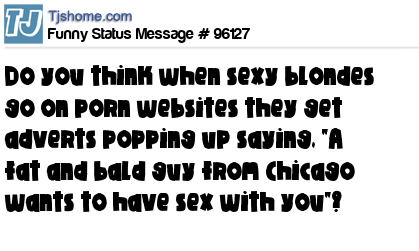 X says Do you think when sexy blondes go on porn websites they get adverts popping up saying, "A fat and bald guy from Chicago wants to have sex with you"?