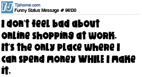X says I don't feel bad about online shopping at work. It's the only place where I can spend money WHILE I make it.