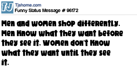 X Men and women shop differently. Men know what they want before they see it. Women don't know what they want until they see it.