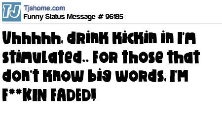 X Uhhhhh, drink kickin in I'm stimulated.. For those that don't know big words, I'M F**KIN FADED!