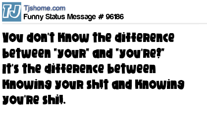 - # 90847 GRAMMAR: The difference between knowing YOUR sh!t and knowing YOU'RE sh!t.