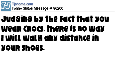 - # 78367 You say never judge someone until you've walked a mile in their shoes. But sorry, I can't walk a mile in your shoes. Because you wear Crocs. And I won't be caught dead in Crocs. It's actually the reason I judge you.