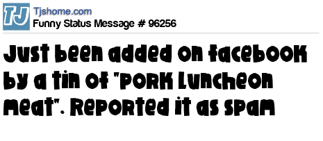 X is Just been added on facebook by a tin of "pork luncheon meat". Reported it as spam