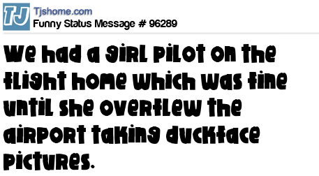X We had a girl pilot on the flight home which was fine until she overflew the airport taking duckface pictures.