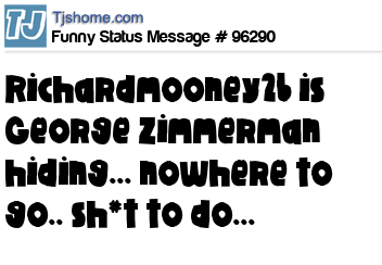 X is richardmooney26 is George Zimmerman hiding... nowhere to go.. sh*t to do...