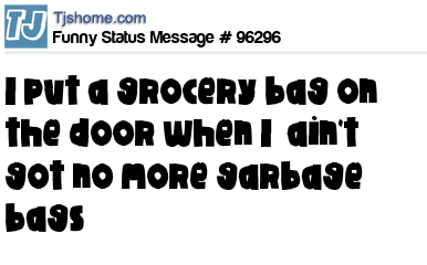 X is i put a grocery bag on the door when I ain't got no more garbage bags