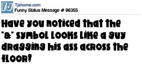 - # 101288 Has anyone ever noticed the & symbol looks like a man dragging his a$$ across the floor?