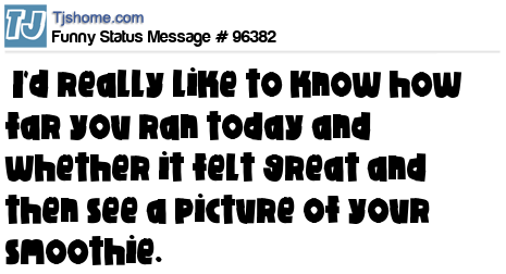 X I'd really like to know how far you ran today and whether it felt great and then see a picture of your smoothie.