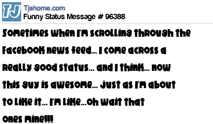 X Sometimes when I'm scrolling through the Facebook news feed... I come across a really good status... and I think... now this guy is awesome... just as I'm about to like it... I'm like...oh wait that ones mine!!!