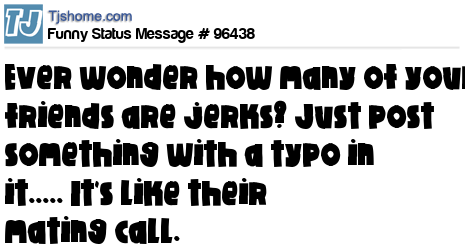 X Ever wonder how many of your friends are jerks? Just post something with a typo in it..... It's like their mating call.