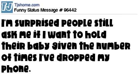 - # 194128 I'm surprised people still ask me if I want to hold their baby given the number of times I've dropped and shattered my phone.