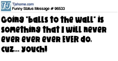 X Going "balls to the wall" is something that I will never ever ever ever EVER do, cuz... youch!