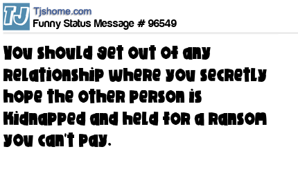 X says You should get out of any relationship where you secretly hope the other person is kidnapped and held for a ransom you can't pay.