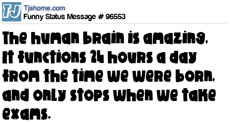 X says The human brain is amazing, It functions 24 hours a day from the time we were born, and only stops when we take exams.