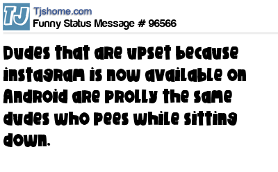 X is Dudes that are upset because instagram is now available on Android are prolly the same dudes who pees while sitting down.