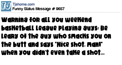 X Warning for all you weekend basketball league playing guys: Be leary of the guy who smacks you on the butt and says "Nice shot, man!" when you didn't even take a shot...