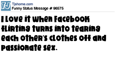X says I love it when Facebook flirting turns into tearing each other's clothes off and passionate sex.